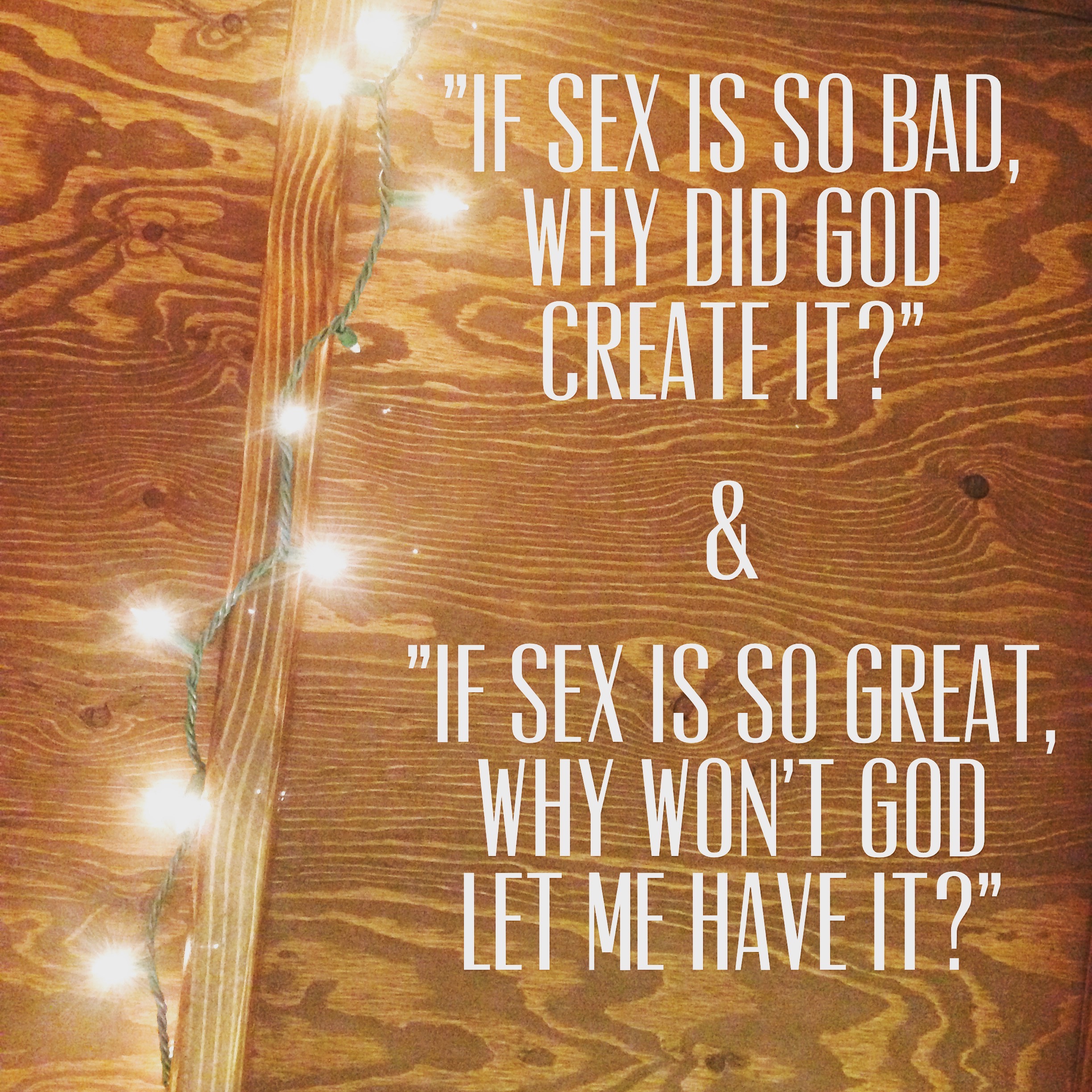 We need to stop saying that sex is bad but it’s great, and we need to start encouraging one another to live truth out daily, to submit to God hourly, to choose obedience in that moment when our desires are telling us to compromise. We need to live this way in order for the world to see the love and light of Christ in us as professing believers.