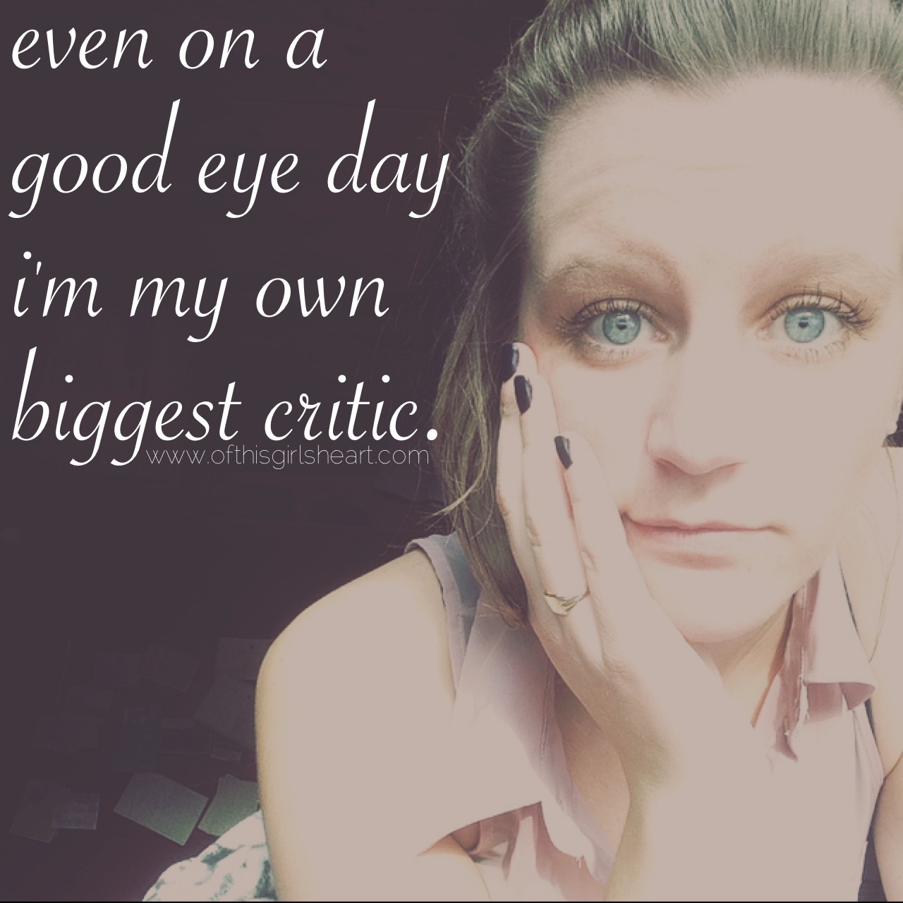 That’s on me. The fact that I let so many voices control the way I feel about myself in my weakest (yes, weakest) moments is my own fault. See posting the selfie of when I’m having a good eye day may seem like I’m strong, bold and confident (inevitably this is the image I’m trying to promote) – but as soon as I flip the camera onto my own face something inside me starts to falter. The strength gets sucked into plumping up my lips and pinching my cheeks to give them colour and working on relaxing my eyes to avoid extra wrinkles on the side of my face.